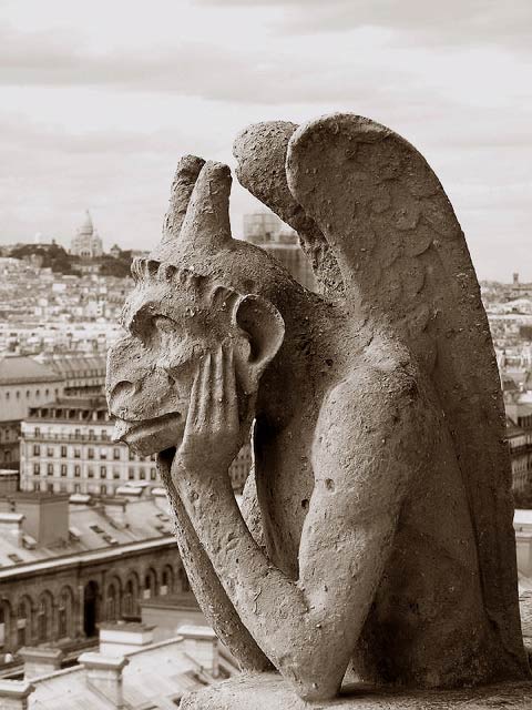 Probablemente la leyenda de la gárgola procede de La Gargouille; un desagradable dragón de cuello de serpiente y correosas alas, que se dedicaba a destruir y engullir todo aquello que encontraba en su camino, con sus poderosas llamas. La Gargouille atormentó a la humanidad hasta que un religioso prometió al pueblo traumatizado, negociar con la bestia si aceptaban construir una iglesia y el abandono del paganismo. Los aldeanos de esta manera así lo hicieron y el religioso domó a la bestia haciendo la señal de la cruz. Luego la quemaron y solamente quedo su lengua y su cuello, que fueron utilizados para adornar la iglesia, en rememoración del tormento que el paganismo había traído al pueblo.