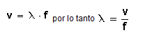 fórmula que nos indica que la longitud de onda l y la frecuencia f son dos magnitudes inversamente proporcionales, es decir que cuanto mayor es una tanto menor es la otra.