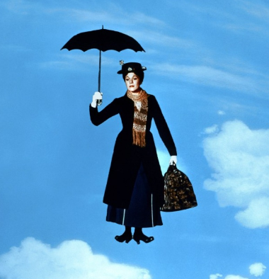 Mary Poppins (protagonizada por Julie Andrews), conocido personaje de la literatura inglesa, es un hada informada de buenísimas intenciones, juguetona, simpática (en la medida que suele ser un hada) y dotada de poderes que le permiten volar (con la ayuda de un simple paraguas) o internarse en el mundo de la fantasía pura, en donde la gente merienda tranquilamente suspendida del techo, burlando los más elementales principios de la ley de gravedad.
