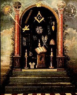 Altar: Mesa situada delante del Venerable, sobre la que están situadas las tres Grandes Luces, es decir, el Volumen de la Santa Ley, la escuadra y el compás. Ante el altar los nuevos iniciados prestan su juramento.