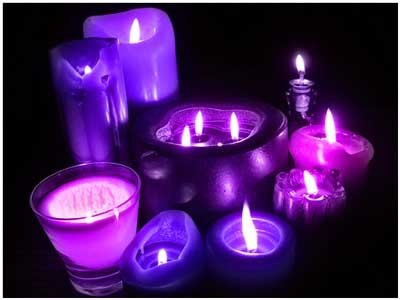 Violeta o Lila: Perseverancia, sacrificio y piedad. Una vela morada atrae la tranquilidad y cordialidad.