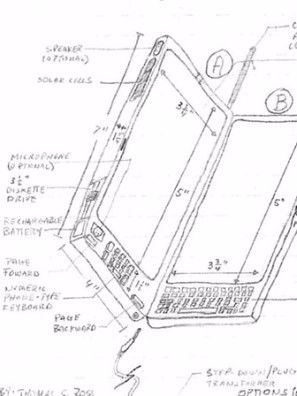 El caso se ocupa de 3 maquetas técnicas a mano que Ross hizo, mostrando un dispositivo cuadrangular plano con una pantalla y botones.