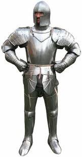 La cota de malla, hecha con anillos de hierro o acero, ya era conocida en la antigüedad. A partir del siglo XIII, los caballeros empezaron a considerarla no sólo incomoda de llevar, sino, además, ineficaz contra armas tales como el martillo de guerra y la espada de dos manos o manodoble. Empezaron, pues, a utilizar otro tipo de armadura hecha de placas de hierro o acero. Desde finales del siglo XIV los caballeros que iban a la guerra se protegían con armaduras de piezas articuladas, que se siguieron utilizando hasta el siglo XVII como armas de aparato y lucimiento.