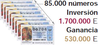 Puesto que en el bombo se encuentran las bolas de los 85.000 números que participan, y todas tienen la misma probabilidad de obtener el primer premio, participando con un sólo número se dispone de una probabilidad de 1/85.000 de obtener el máximo premio. Esta probabilidad es del orden de 12 a 1.000.000, es decir, muy baja. Expresado de otro modo, si quisiéramos asegurarnos de que nos tocara el gordo, deberíamos comprar un décimo de cada número que participa, es decir, invertir 85.000 x 20 =1.700.000 Euros, obteniendo en este caso una recompensa de tan solo 530.000 Euros con los premios importantes. Un mal negocio a todas luces.