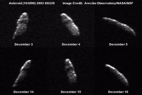 Tras el paso del gran asteroide con forma de cráneo que nos visitó en Halloween, otro gran asteroide hizo lo propio en estos días de Navidad: una gran roca espacial de unos 2 kilómetros de longitud que fue bautizada como 2003 SD220 sobrevoló la Tierra a 11 millones de kilómetros de distancia (unas 28 veces más lejos que la distancia que hay entre la Tierra y la Luna). Gracias a los datos tomados en esta última observación, los científicos podrán hacer un mejor seguimiento durante su próximo acercamiento, el cuál tendrá lugar en al año 2018 (y pasará a una distancia aproximada de 2,8 millones de kilómetros, distancia más que segura para nuestro planeta).